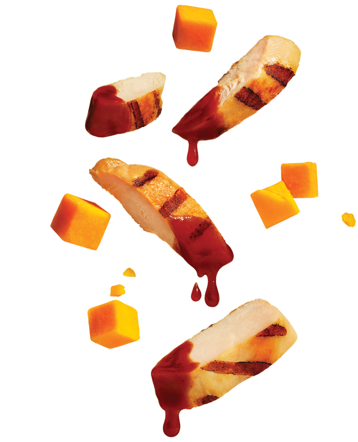 1 tray of grilled chicken with bbq sauce for dipping plus colby cheese squares.