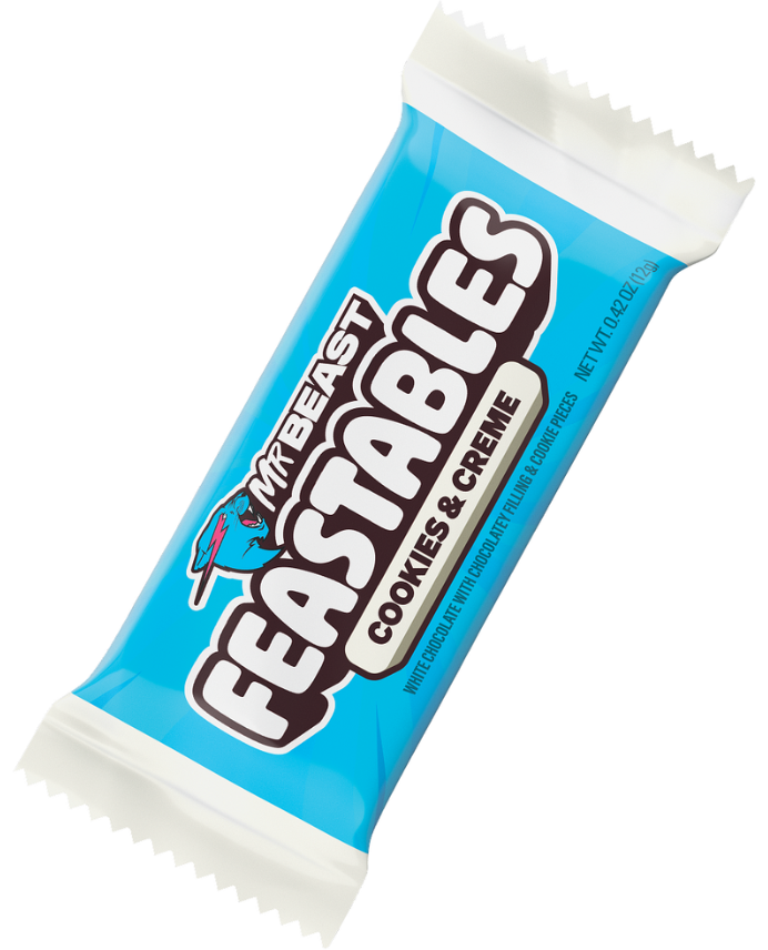 1 Cookies & Creme Feastables chocolate bar with crunchy cookie pieces and smooth white chocolate. Wrap up lunch with an awesome sweet treat!