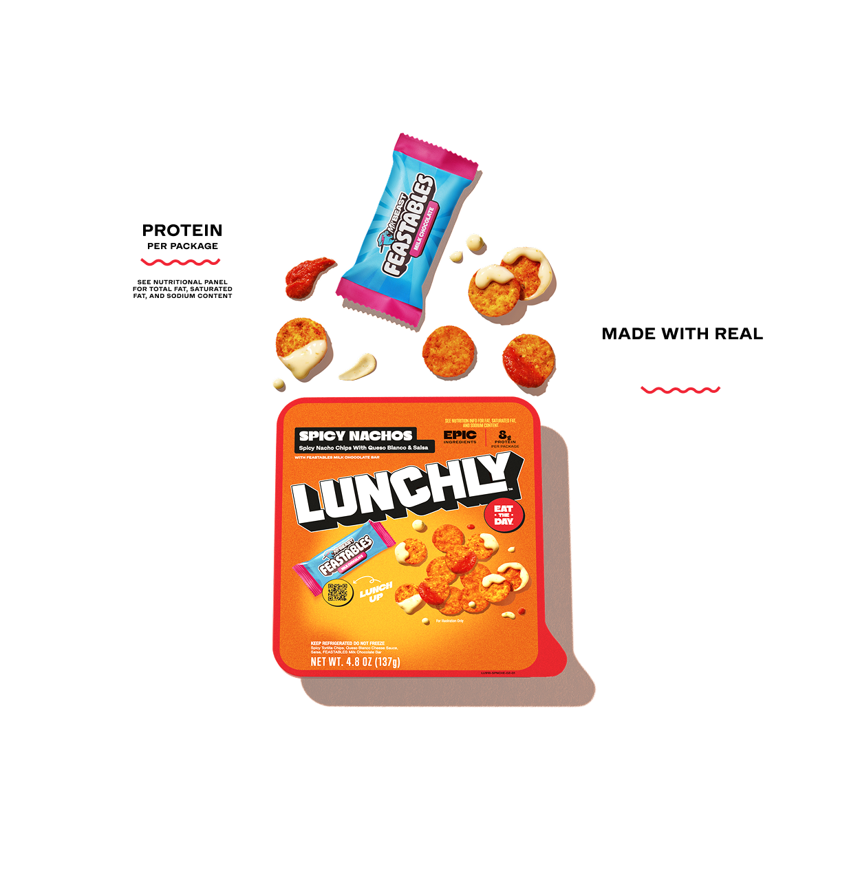 LUNCHLY™ Spicy Nachos serve up a tray of corn chips and two bold dips, crafted with elevated ingredients and 8g of protein per serving. Now that’s not’cho standard school lunch.